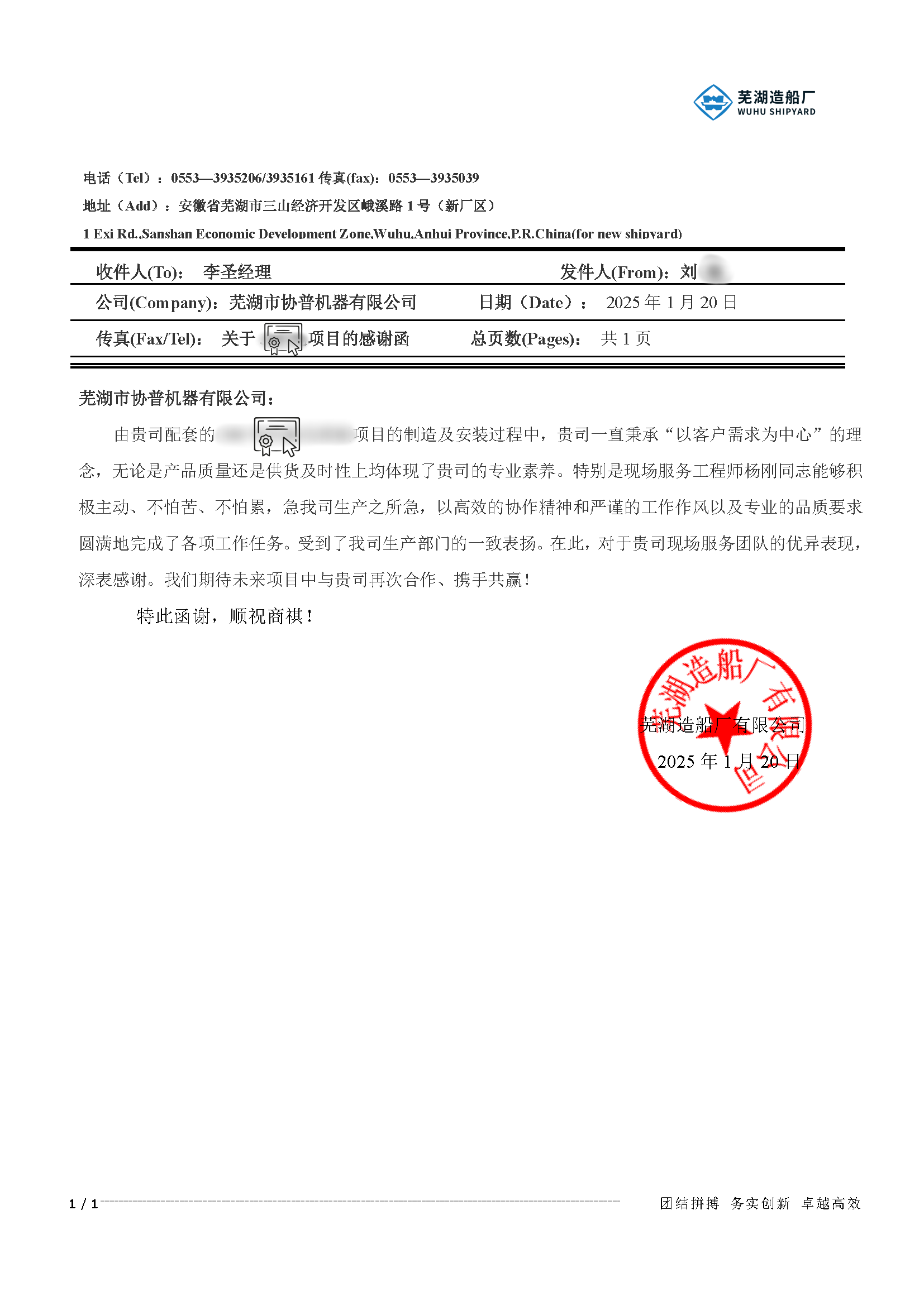 2025年,協(xié)普在給蕪湖船廠配套項(xiàng)目的制造及安裝過(guò)程中,一直秉承“以客戶需求為中心”的理念,無(wú)論是產(chǎn)品質(zhì)量、還是供貨及時(shí)性以及現(xiàn)場(chǎng)的服務(wù)均受到了蕪湖造船廠的高度認(rèn)可。協(xié)普?qǐng)F(tuán)隊(duì),以高效的協(xié)作精神和嚴(yán)謹(jǐn)?shù)墓ぷ髯黠L(fēng)以及專(zhuān)業(yè)的品質(zhì)要求圓滿地完成了各項(xiàng)工作任務(wù)。受到了蕪湖造船廠生產(chǎn)部門(mén)的一致表?yè)P(yáng)。