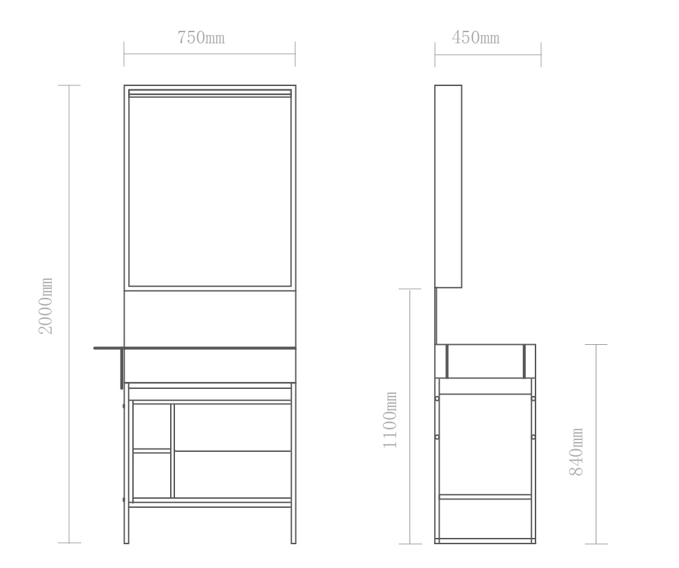 尺寸:750x450x2000 (mm) (可定制)